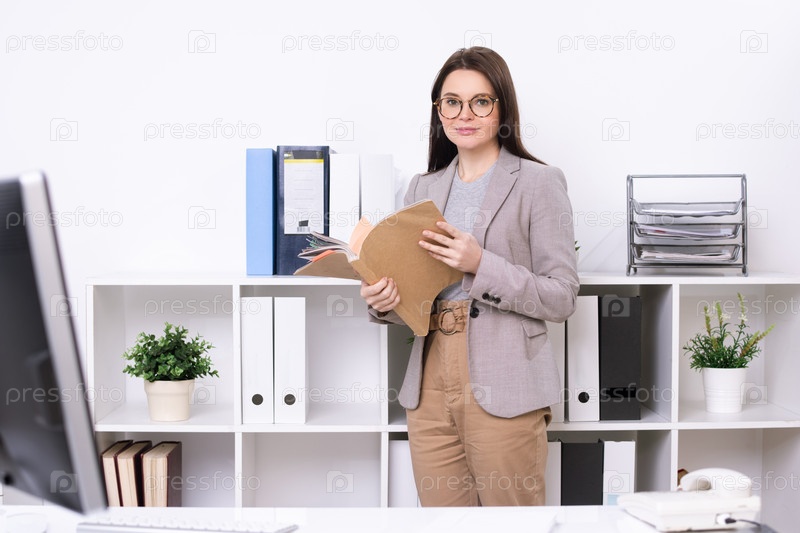 Stylish secretary finding file Стильный секретарь, находящий файл