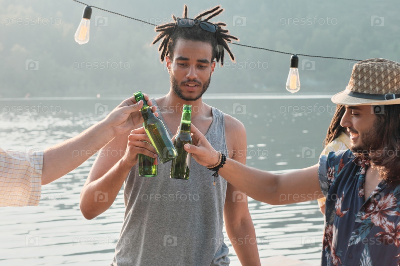 Парни пьют пиво на свежем воздухе