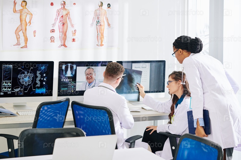 Исследователи разговаривают с пульмонологом