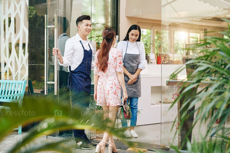 Официанты приглашают клиента