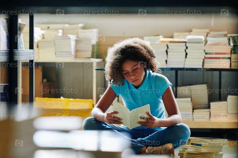 Ученица проводит время в библиотеке