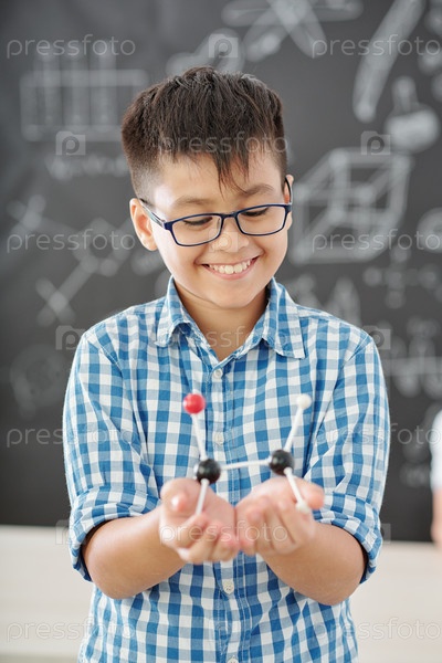 Счастливый ребенок учится химии