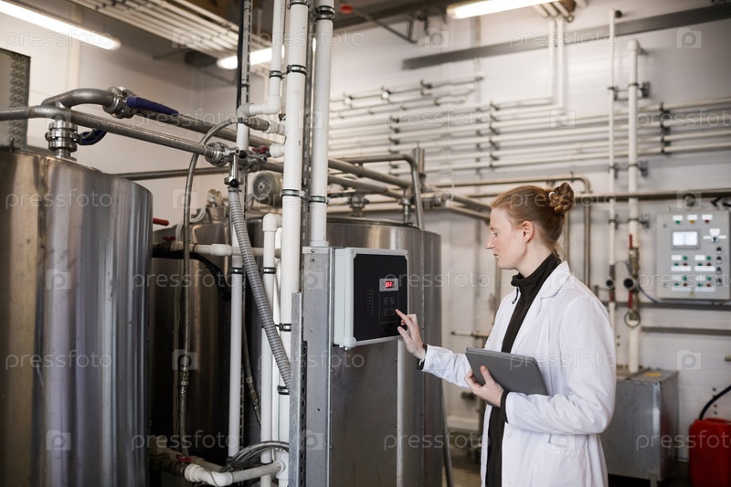Женщина, работающая с машинами на пищевой фабрике