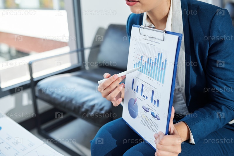 Деловая женщина показывает график