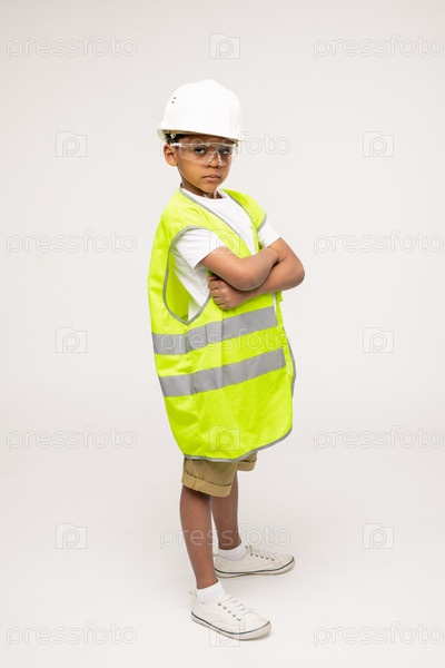 Веселый маленький мальчик африканской этнической принадлежности, показывающий пустой желтый пузырь речи