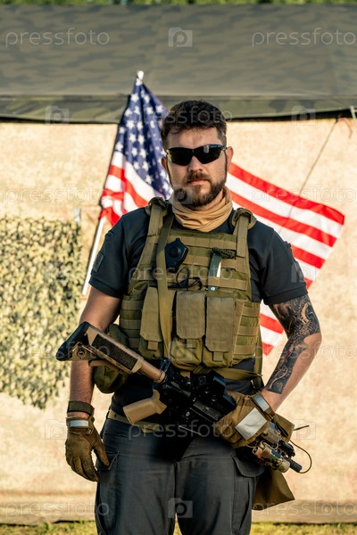 Брутальный мужчина с винтовкой