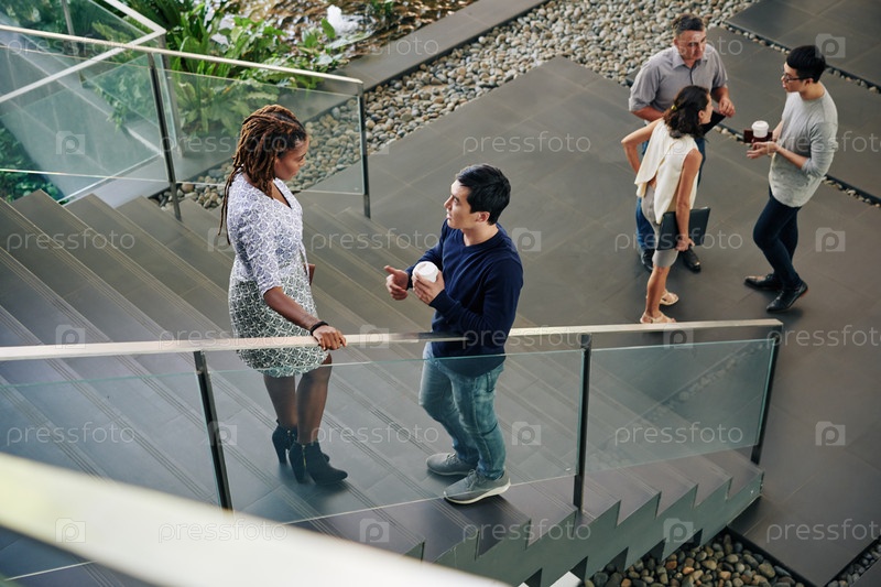 Бизнесмены, разговаривающие на лестнице