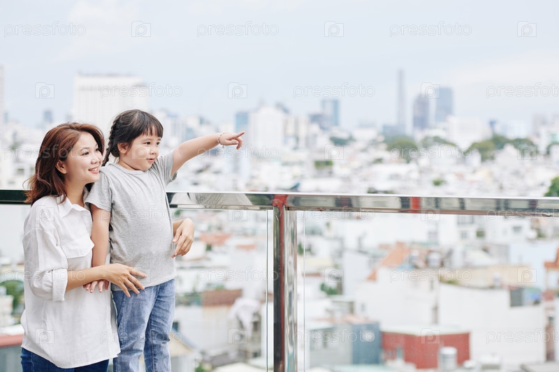 Мама ата дочь смотрит на город