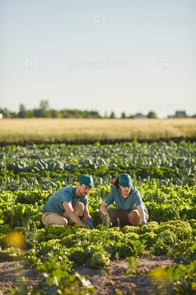 Два человека работают на овощной плантации