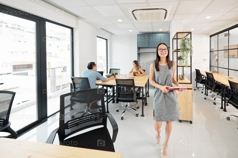 Деловая женщина, идущая к своему столу
