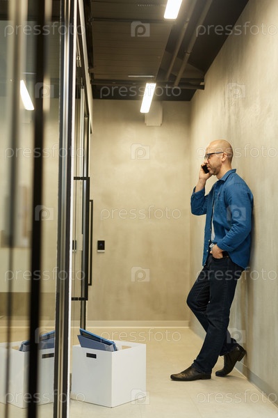 Говоря по телефону в офисном зале Человек
