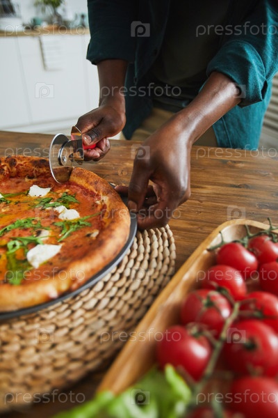 Мужчина ест пиццу дома