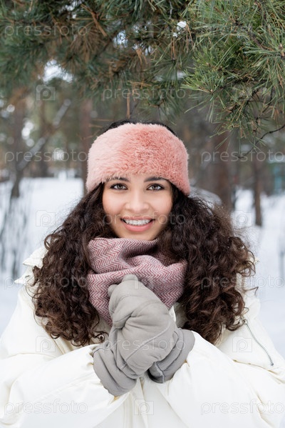 Зимний портрет женщины с кудрявыми волосами