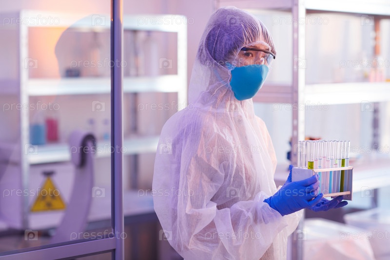 Женщина-химик в маске