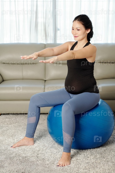 Беременная женщина выполняет упражнения на балансе