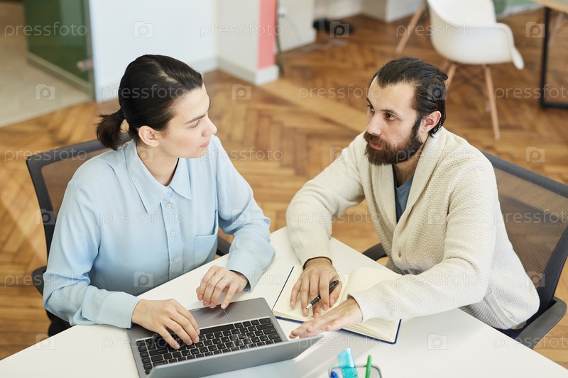 Молодой мужчина и женщина, работающие вместе