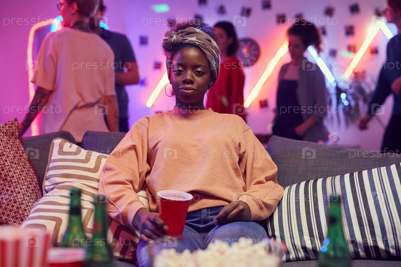 Африканская женщина сидит на вечеринке
