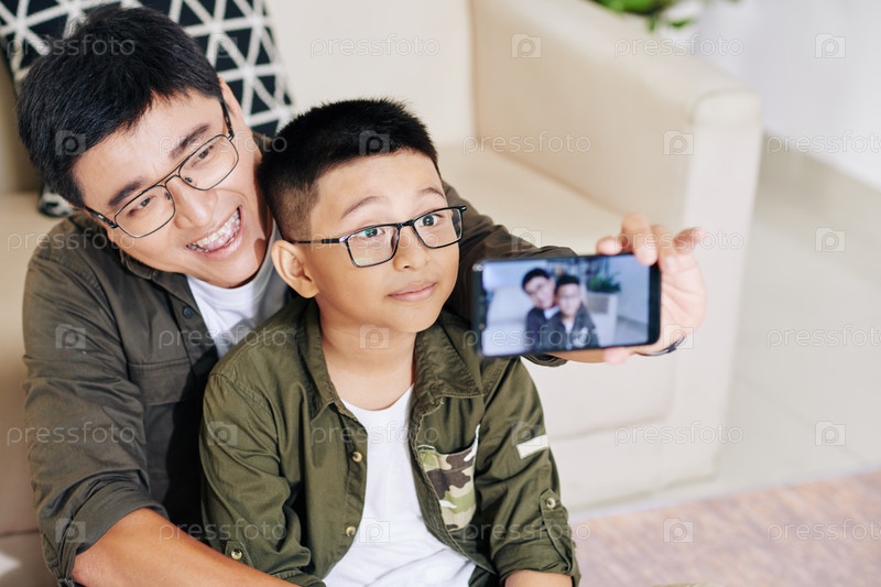 Отец и сын делают селфи
