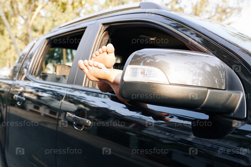 Женские ноги в автомобильном окне