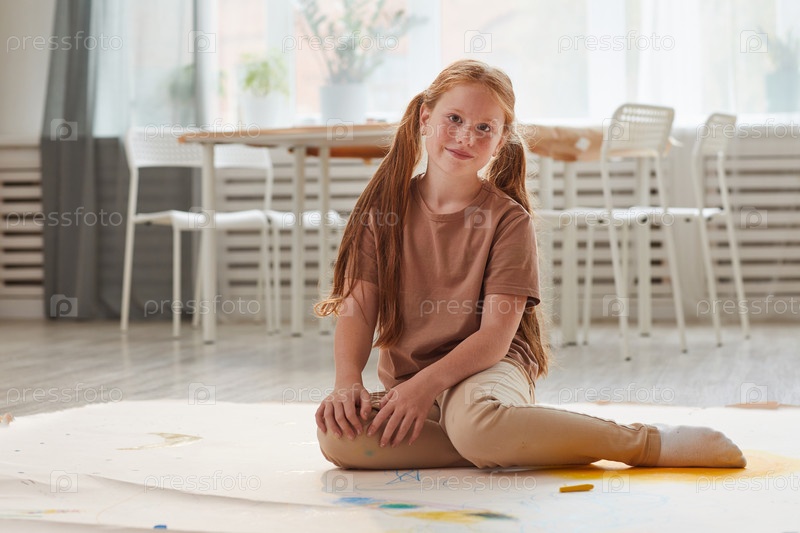 Милая паршивая девушка, сидящая на полу в игровой комнате