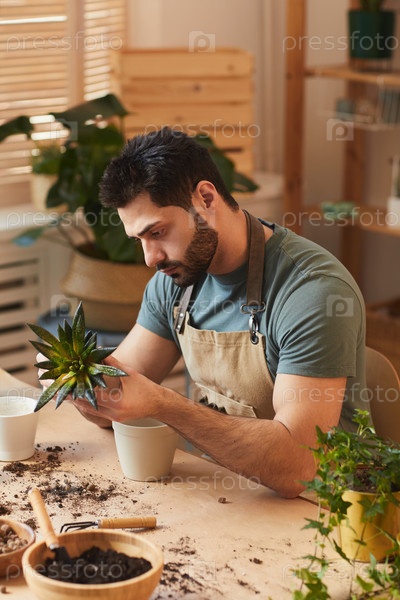 Красивый мужчина горшок растений
