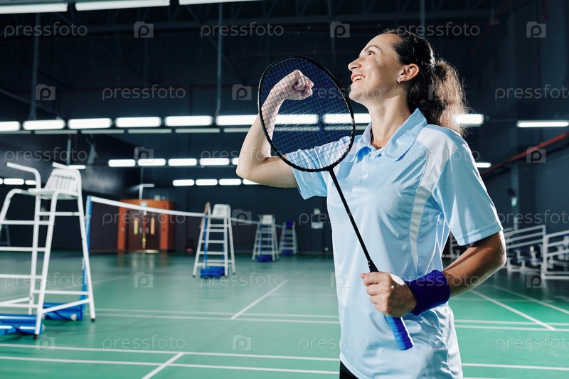 Женская игрок в бадминтон празднует победу