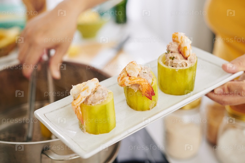 Тарелка с наполненными кольцами цуккини