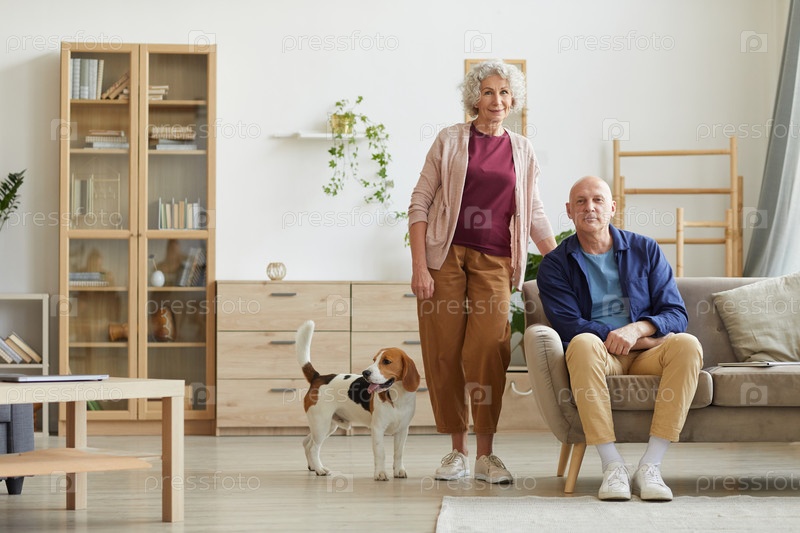 Супружеская пара с собакой в доме старшего