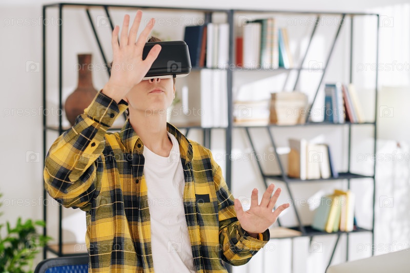 Подросток играет в игру в очках VR