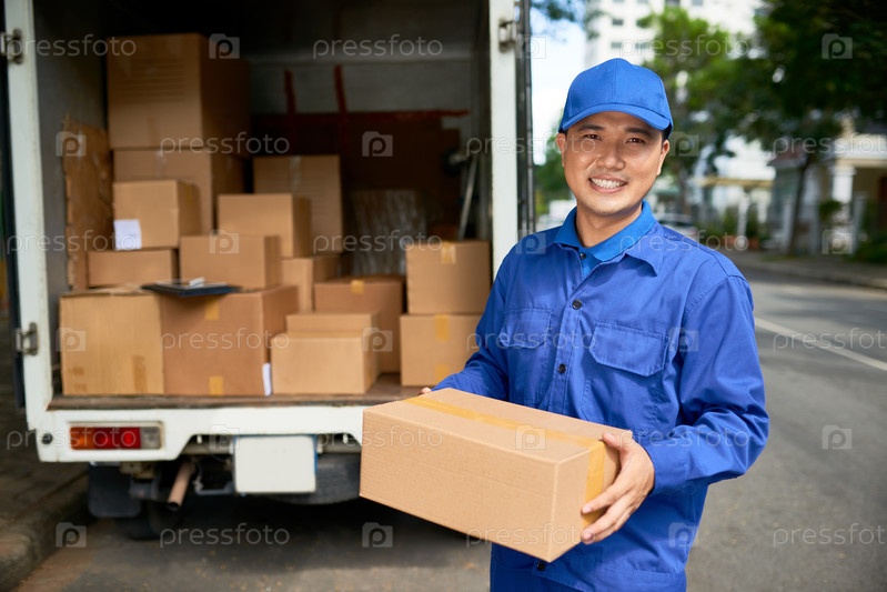 Доставщик с картонной коробкой