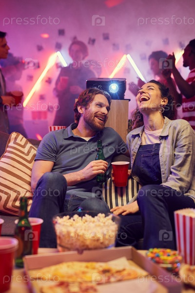Счастливая пара сидит на вечеринке