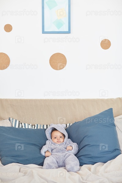 Милый ребенок лежит на большой удобной кровати