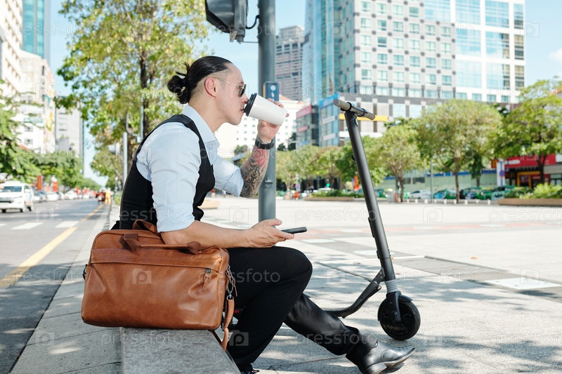 Бизнесмен пьет утром