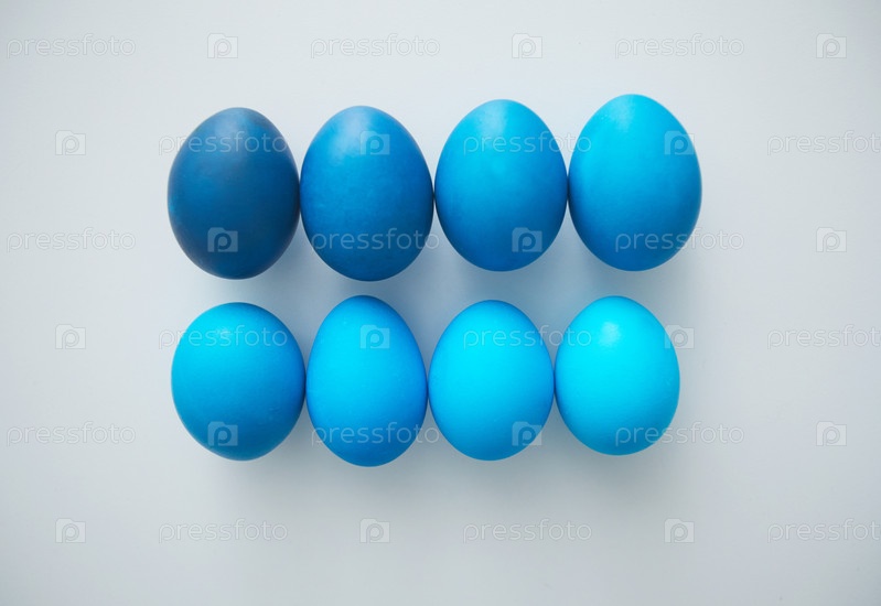 Пасхальные яйца в голубом градиенте