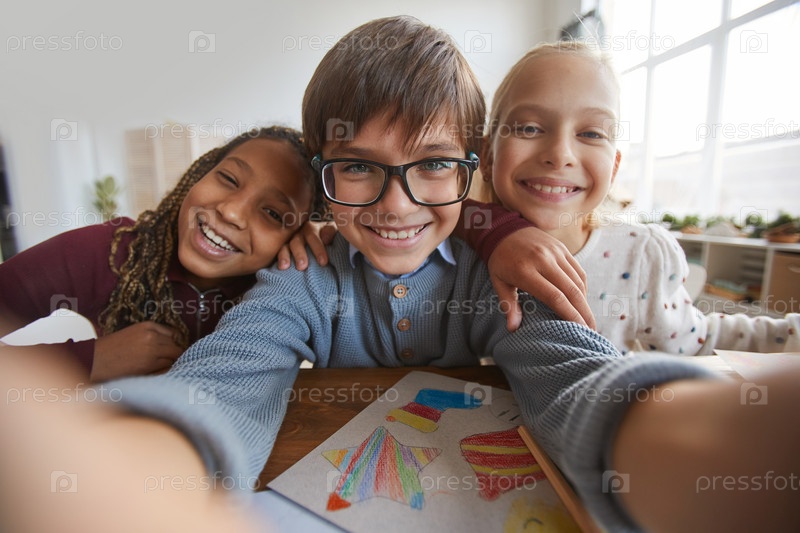 Дети делают селфи в классе