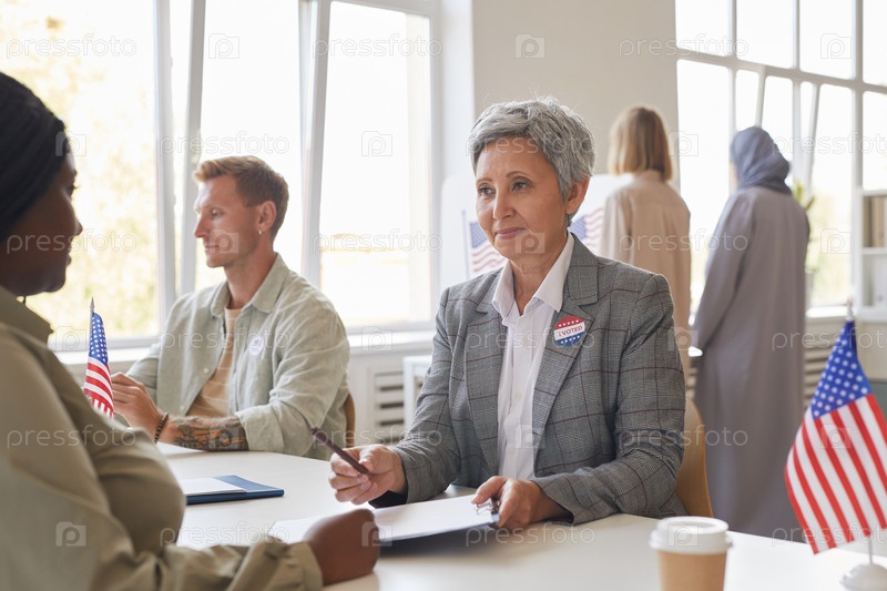 Старшая женщина, работающая на избирательном участке