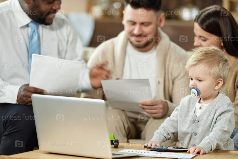 Семья с очаровательным мальчиком на встрече со советником
