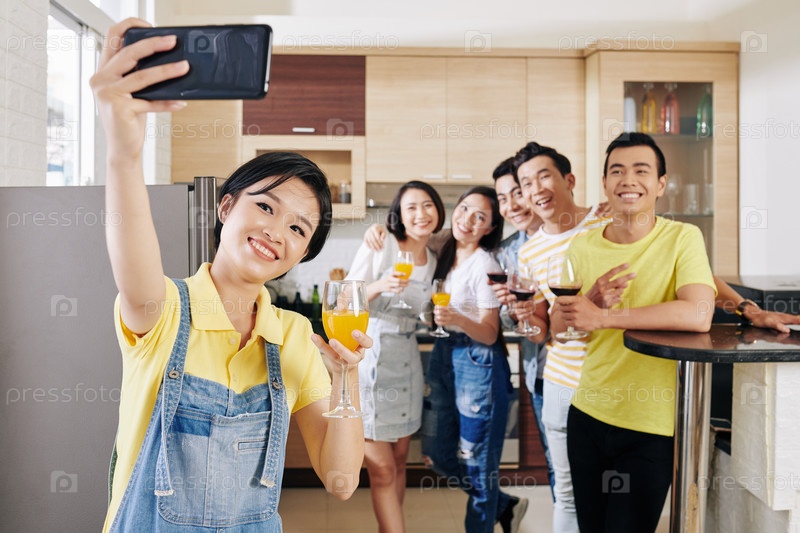 Женщина, делающая селфи с друзьями