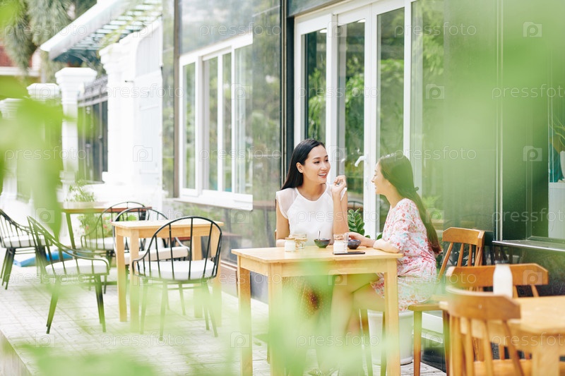 Молодые женщины за столом в кафе