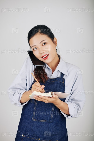 Владелец кафе разговаривает по телефону