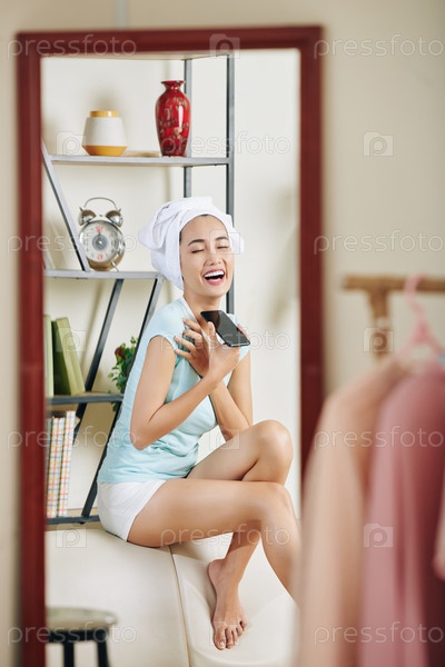 Певчая женщина со смартфоном