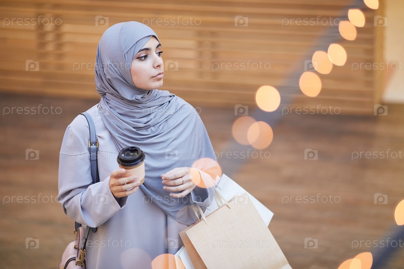Уверенная ближневосточная женщина в торговом центре