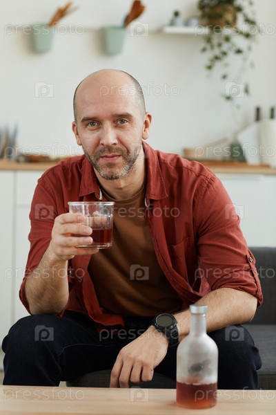 Мужчина пьет виски дома