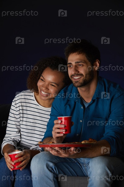 Смешанная раса пара наслаждается фильмом