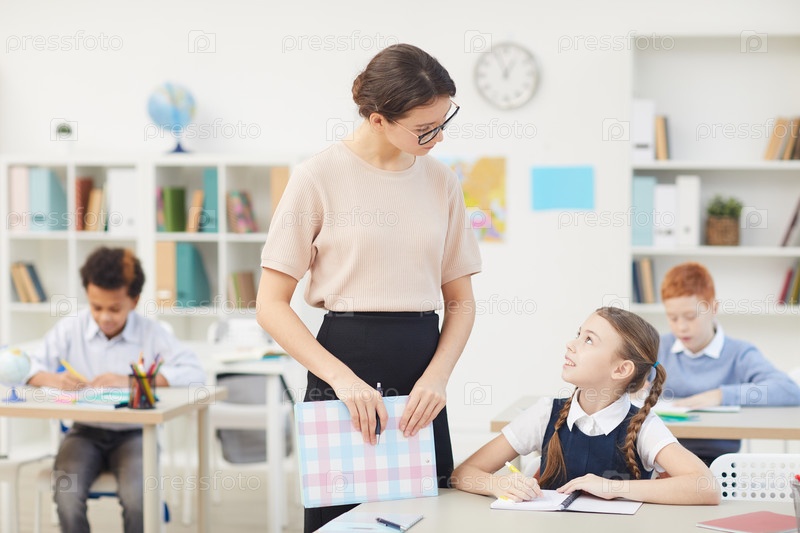 Учитель с ученицей на уроке