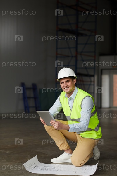 Инженер, работающий с планом строительства