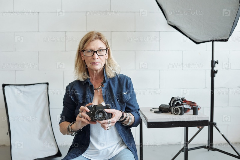Женщина-фотограф в фотостудии