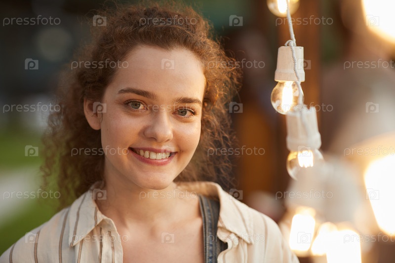 Улыбающаяся молодая девушка на вечеринке в открытом воздухе