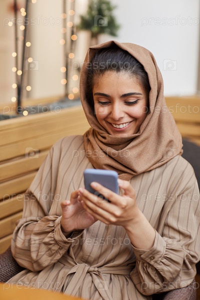 Молодая ближневосточная женщина в кафе