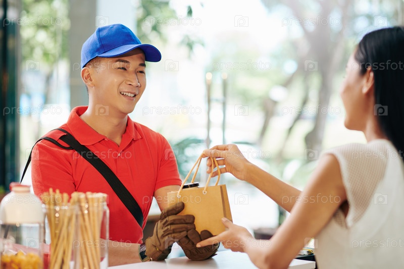 Курьер принимает упакованный заказ